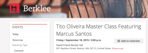 Workshop Ritmos Afro-brasileiros na bateria na Berklee / Boston USA por tytooliveira em 2 de setembro de 20152 de setembro de 2015 No dia 18 de setembro, farei uma Master Class interativa sobre meu Livro Ritmos Afro-brasileiros na bateria. Compartilhe isso: Clique para compartilhar no X(abre em nova janela) 18+ Clique para compartilhar no Facebook(abre em nova janela) Facebook Curtir Carregando... Relacionado