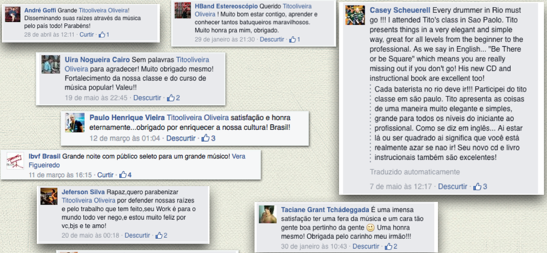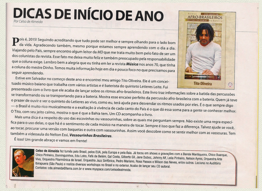 Tito Oliveira, através de suas experiências, estudos, vivência musical dividindo palco com importantes percussionistas baianos e o fascínio pelo Universo percussivo afro-brasileiro, ele traduziu a sua maneira de sentir e interpretar os ritmos e os tambores: O RUM, o RUMPI e o LÉ para a bateria numa intimidade singular. Tito lançou o livro RITMOS AFRO-BRASILEIROS NA BATERIA e ministra workshops interativos por todo Brasil.